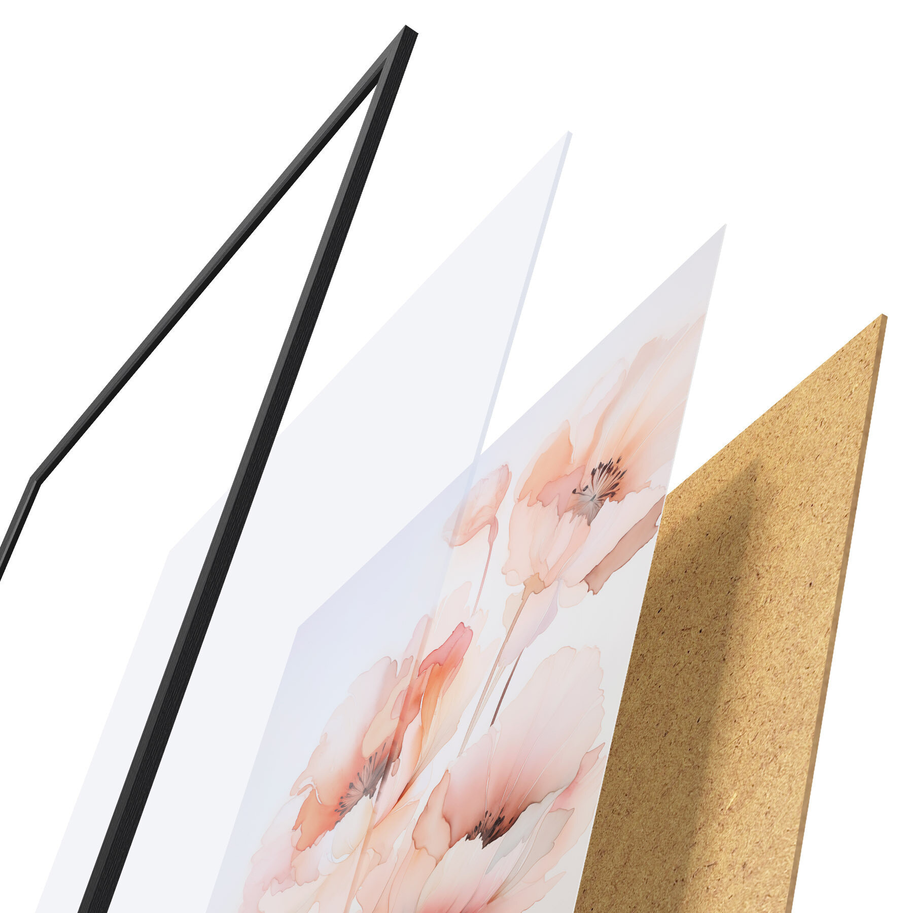Le poster se compose d'un cadre, d'un plexiglas, d'une image imprimée et d'un support en aggloméré. Le poster peut être immédiatement accroché au mur grâce aux fixations au dos.