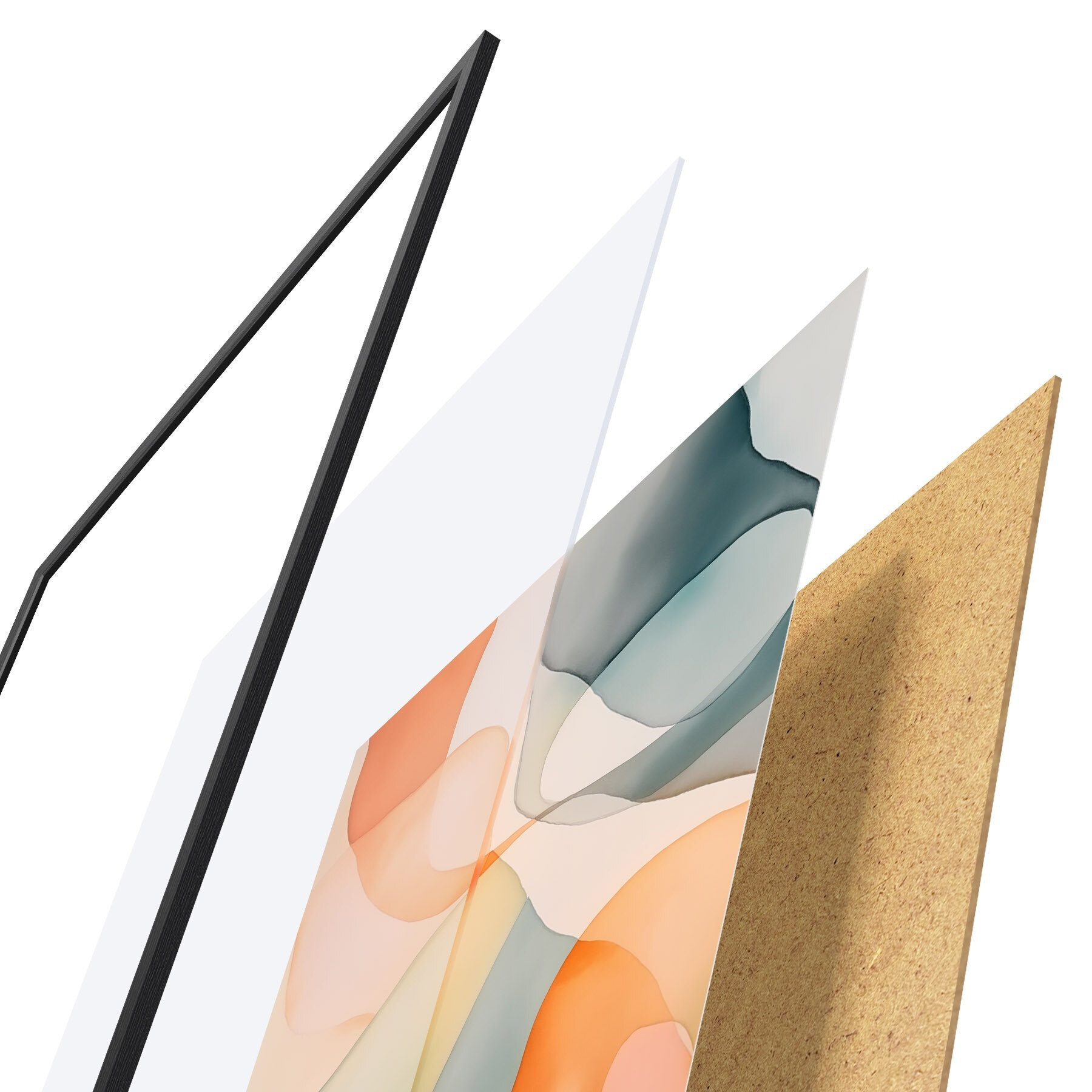 Le poster se compose d'un cadre, d'un plexiglas, d'une image imprimée et d'un support en aggloméré. Le poster peut être immédiatement accroché au mur grâce aux fixations au dos.
