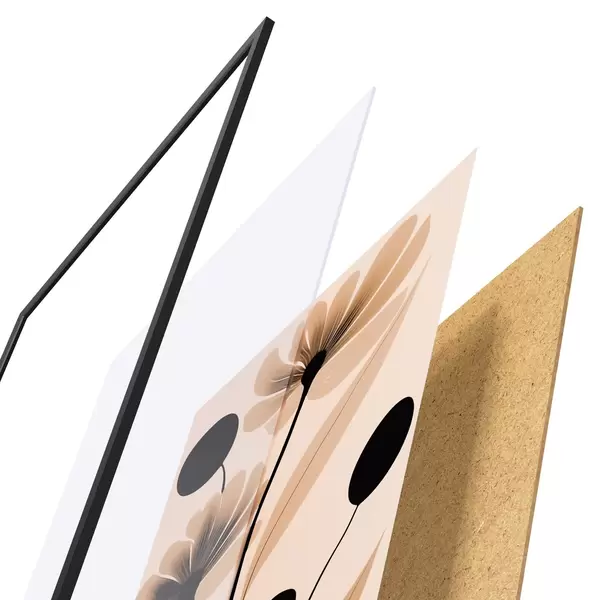 Le poster se compose d'un cadre, d'un plexiglas, d'une image imprimée et d'un support en aggloméré. Le poster peut être immédiatement accroché au mur grâce aux fixations au dos.