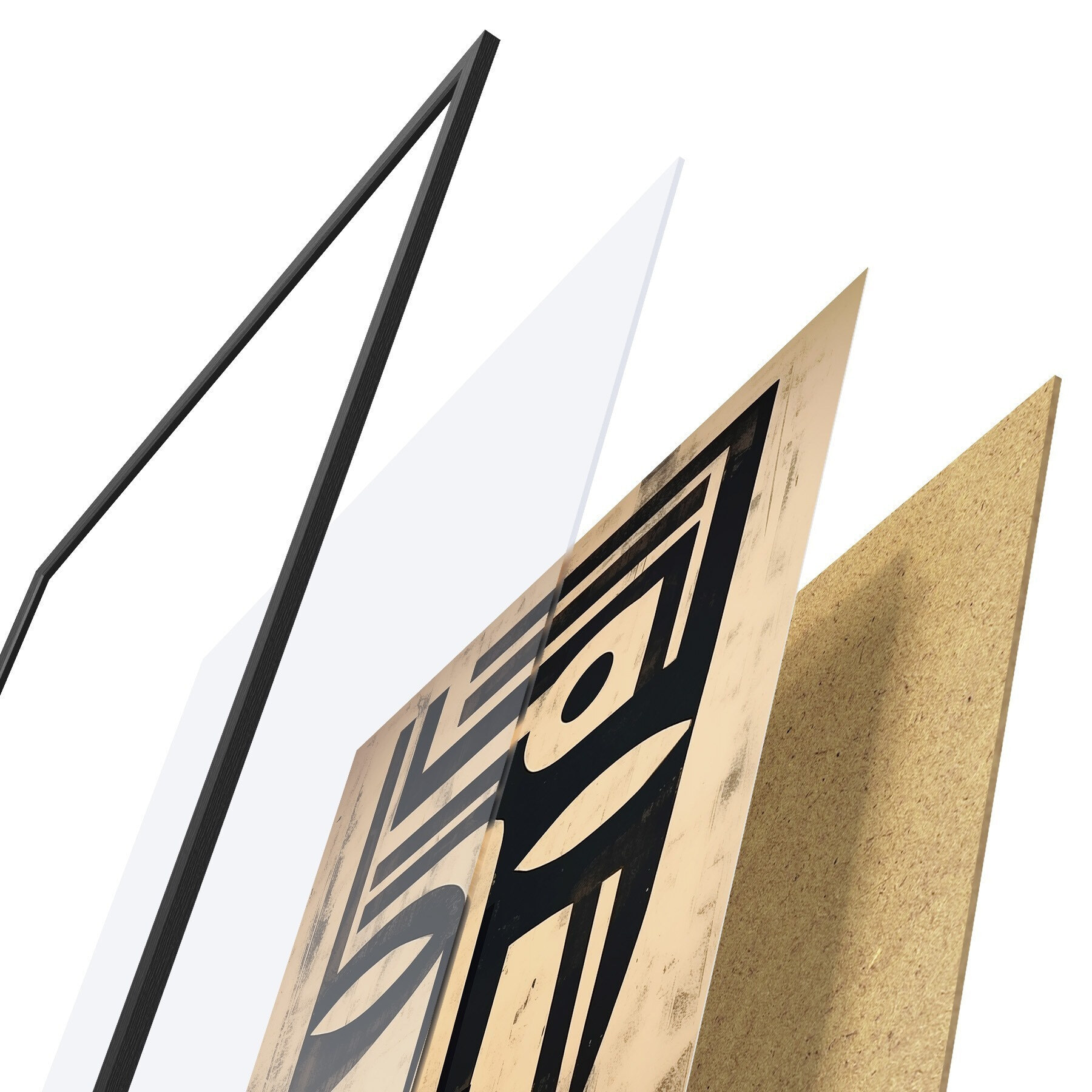 Le poster se compose d'un cadre, d'un plexiglas, d'une image imprimée et d'un support en aggloméré. Le poster peut être immédiatement accroché au mur grâce aux fixations au dos.