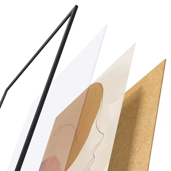 Le poster se compose d'un cadre, d'un plexiglas, d'une image imprimée et d'un support en aggloméré. Le poster peut être immédiatement accroché au mur grâce aux fixations au dos.