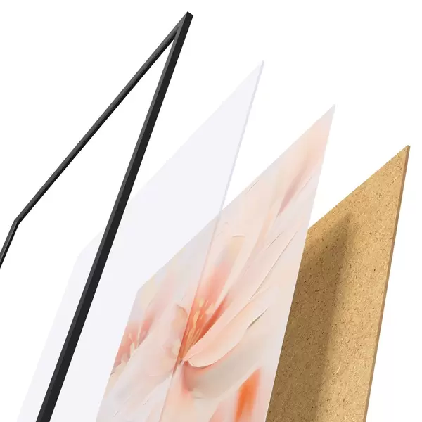 Le poster se compose d'un cadre, d'un plexiglas, d'une image imprimée et d'un support en aggloméré. Le poster peut être immédiatement accroché au mur grâce aux fixations au dos.
