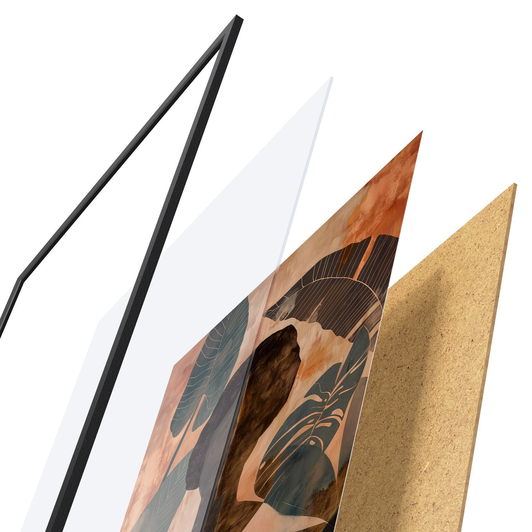 Le poster se compose d'un cadre, d'un plexiglas, d'une image imprimée et d'un support en aggloméré. Le poster peut être immédiatement accroché au mur grâce aux fixations au dos.