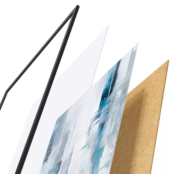 Le poster se compose d'un cadre, d'un plexiglas, d'une image imprimée et d'un support en aggloméré. Le poster peut être immédiatement accroché au mur grâce aux fixations au dos.