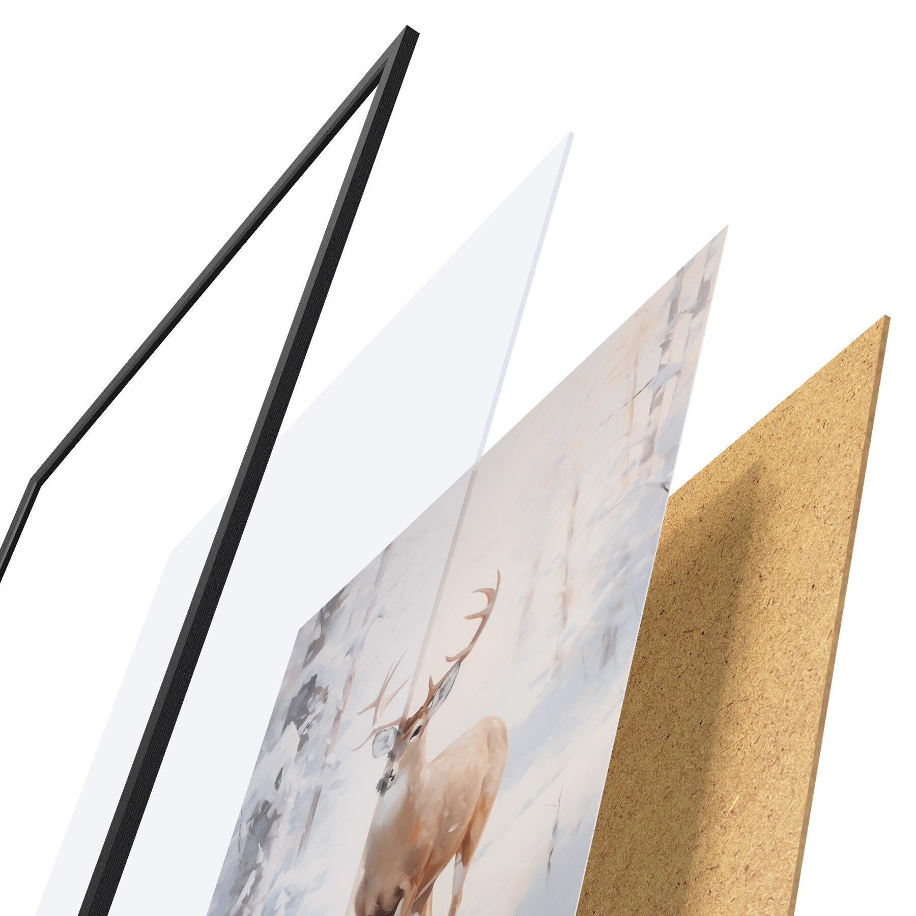 Le poster se compose d'un cadre, d'un plexiglas, d'une image imprimée et d'un support en aggloméré. Le poster peut être immédiatement accroché au mur grâce aux fixations au dos.