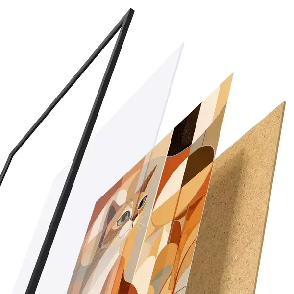 Le poster se compose d'un cadre, d'un plexiglas, d'une image imprimée et d'un support en aggloméré. Le poster peut être immédiatement accroché au mur grâce aux fixations au dos.