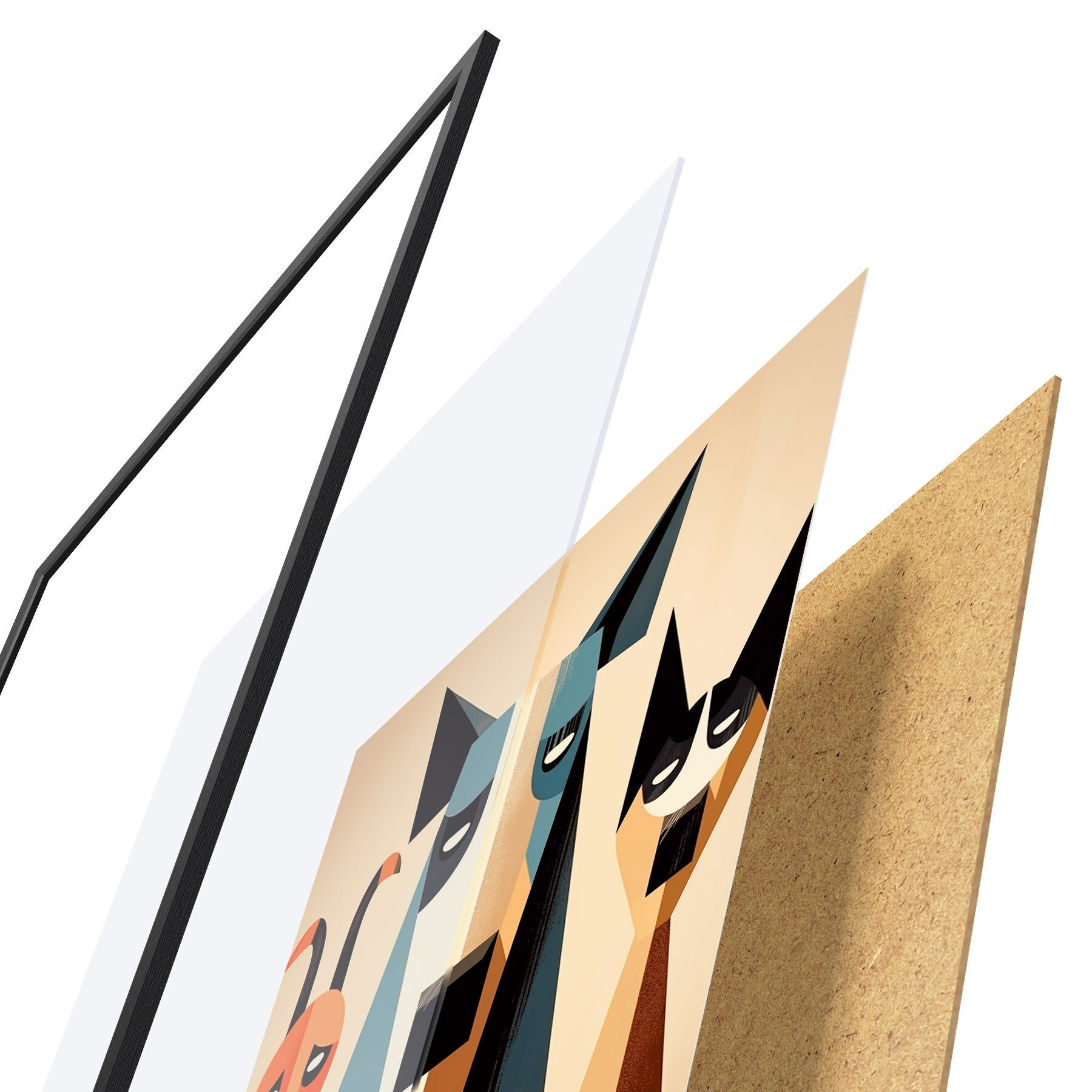 Le poster se compose d'un cadre, d'un plexiglas, d'une image imprimée et d'un support en aggloméré. Le poster peut être immédiatement accroché au mur grâce aux fixations au dos.