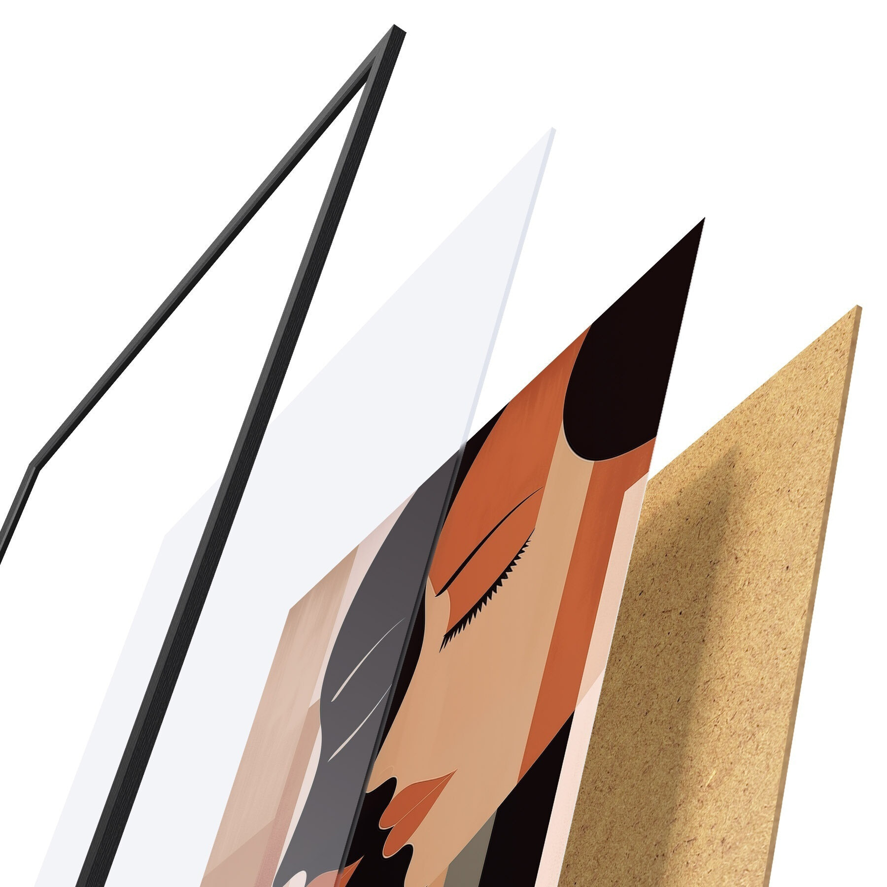 Le poster se compose d'un cadre, d'un plexiglas, d'une image imprimée et d'un support en aggloméré. Le poster peut être immédiatement accroché au mur grâce aux fixations au dos.