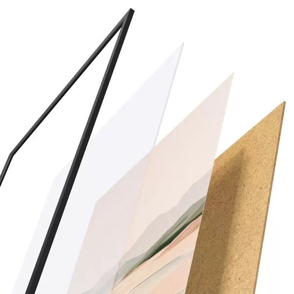 Le poster se compose d'un cadre, d'un plexiglas, d'une image imprimée et d'un support en aggloméré. Le poster peut être immédiatement accroché au mur grâce aux fixations au dos.