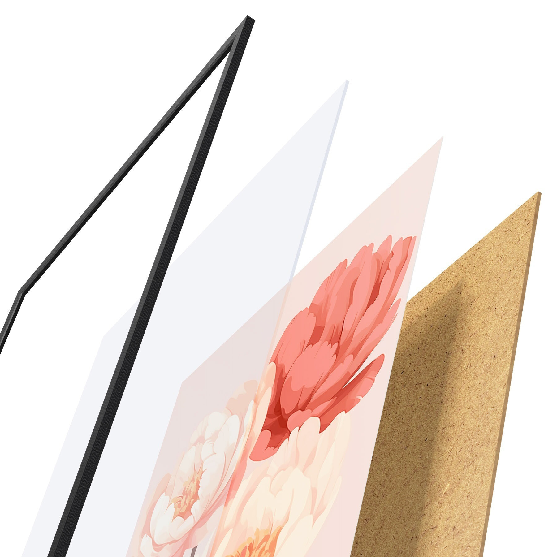 Le poster se compose d'un cadre, d'un plexiglas, d'une image imprimée et d'un support en aggloméré. Le poster peut être immédiatement accroché au mur grâce aux fixations au dos.
