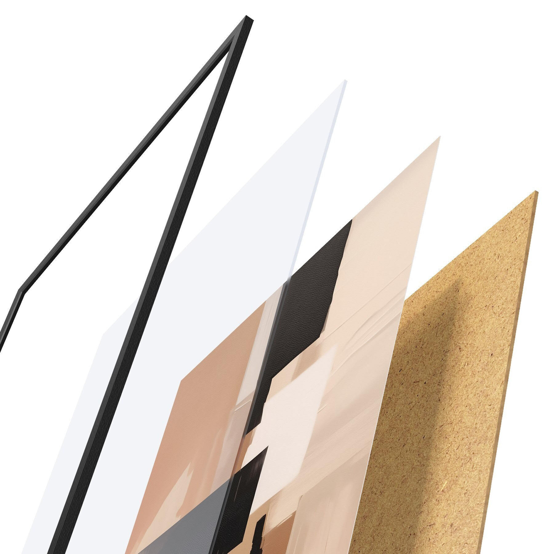 Le poster se compose d'un cadre, d'un plexiglas, d'une image imprimée et d'un support en aggloméré. Le poster peut être immédiatement accroché au mur grâce aux fixations au dos.