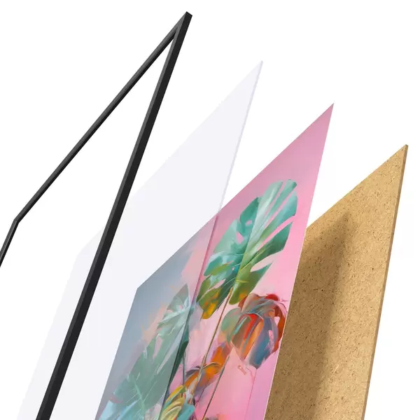 Le poster se compose d'un cadre, d'un plexiglas, d'une image imprimée et d'un support en aggloméré. Le poster peut être immédiatement accroché au mur grâce aux fixations au dos.