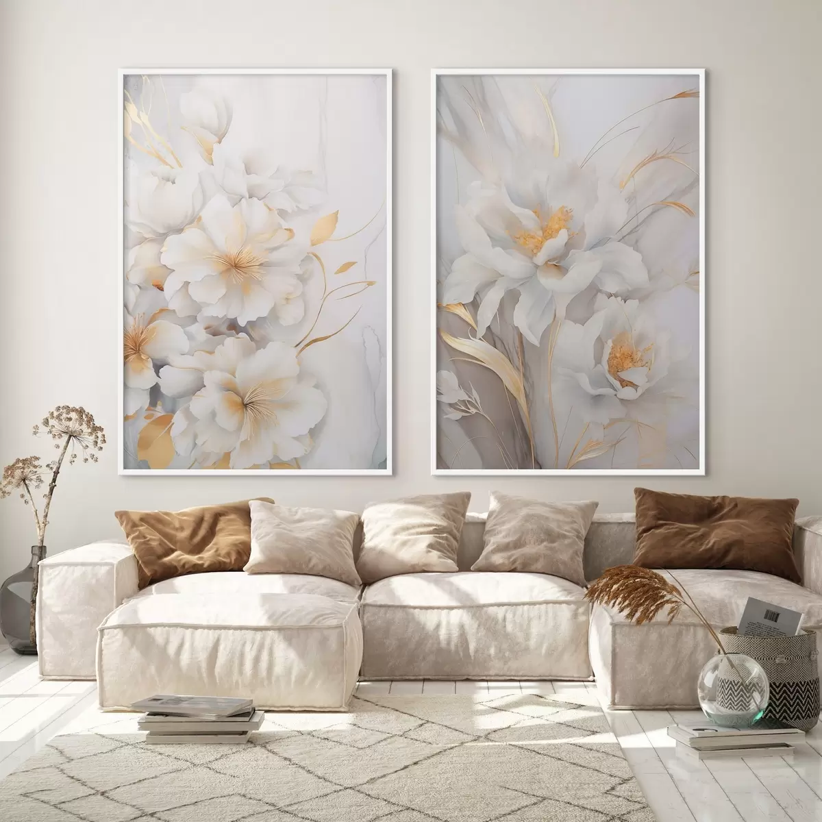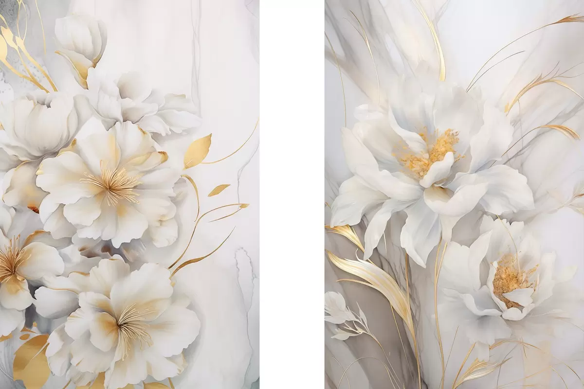 Affiche Fleurs blanches avec des détails jaunes, pétales avec des ombres subtiles, fond clair avec un effet marbré subtil Non d00889