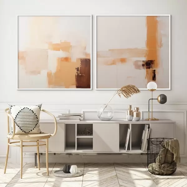 Affiche Composition abstraite en deux parties, dans les tons beige et marron Non d00891