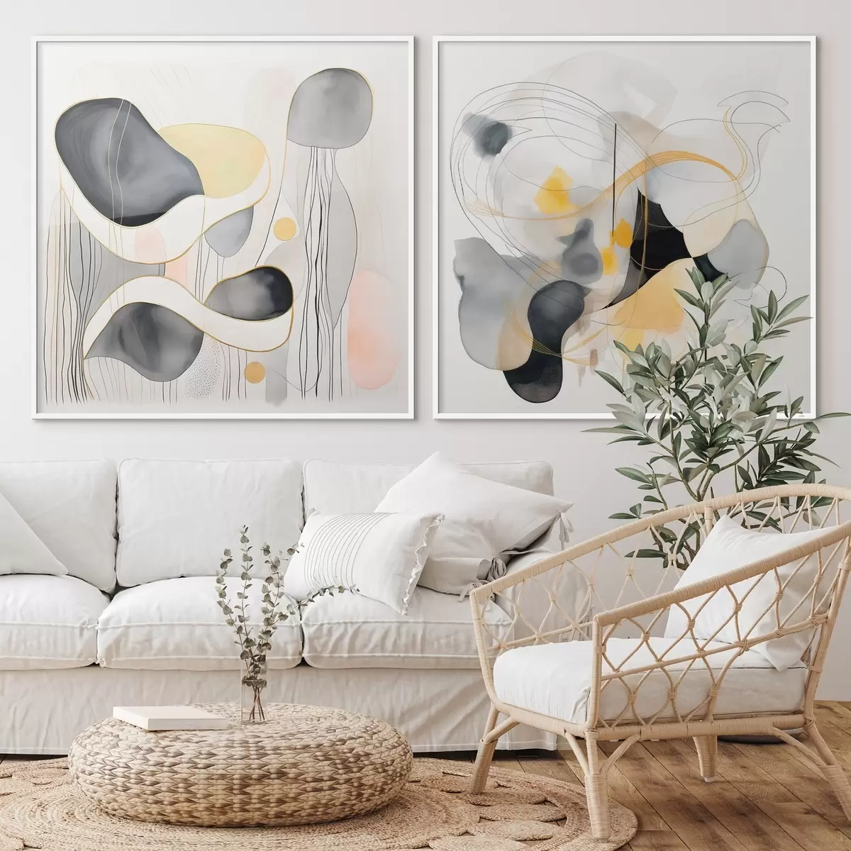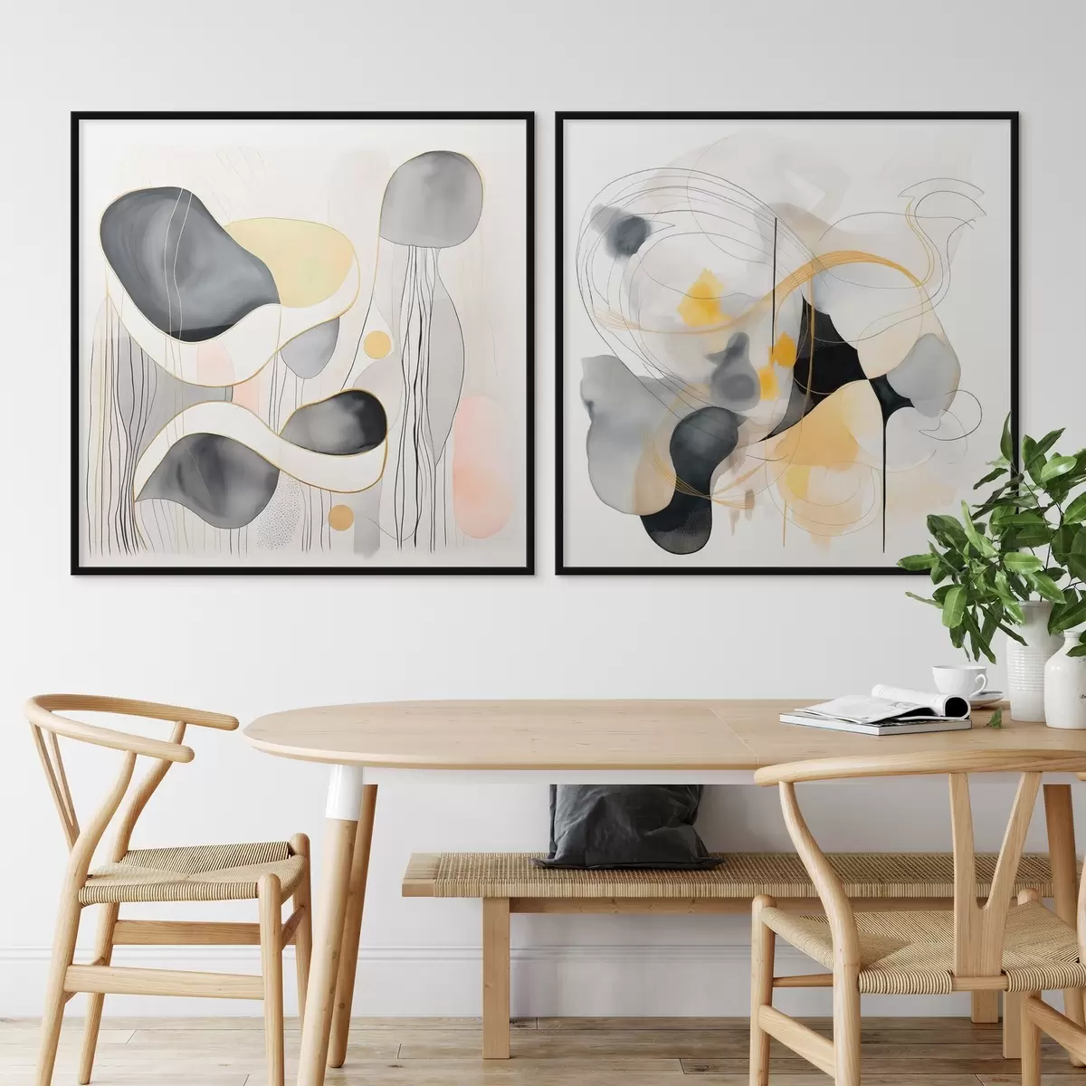 Affiche Monochrome et accents jaunes dans un style abstrait d00905