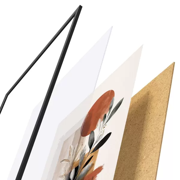 Le poster se compose d'un cadre, d'un plexiglas, d'une image imprimée et d'un support en aggloméré. Le poster peut être immédiatement accroché au mur grâce aux fixations au dos.