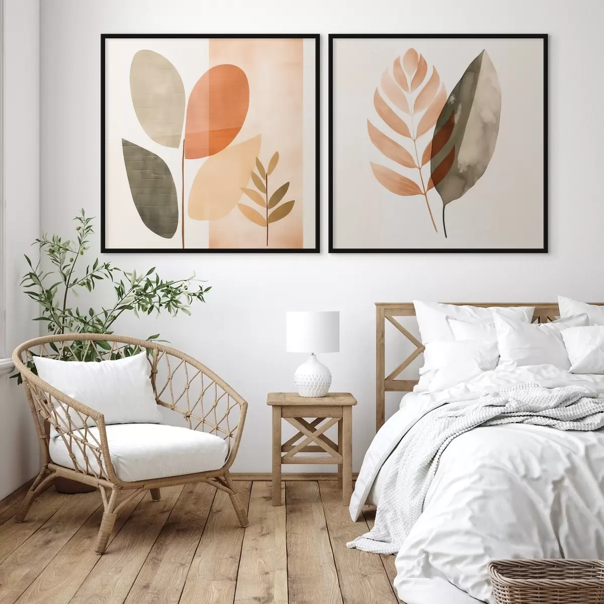Affiche Diptyque avec motifs botaniques dans une palette pastel Non d00983