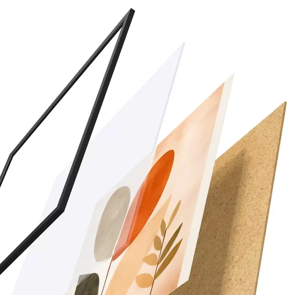 Le poster se compose d'un cadre, d'un plexiglas, d'une image imprimée et d'un support en aggloméré. Le poster peut être immédiatement accroché au mur grâce aux fixations au dos.