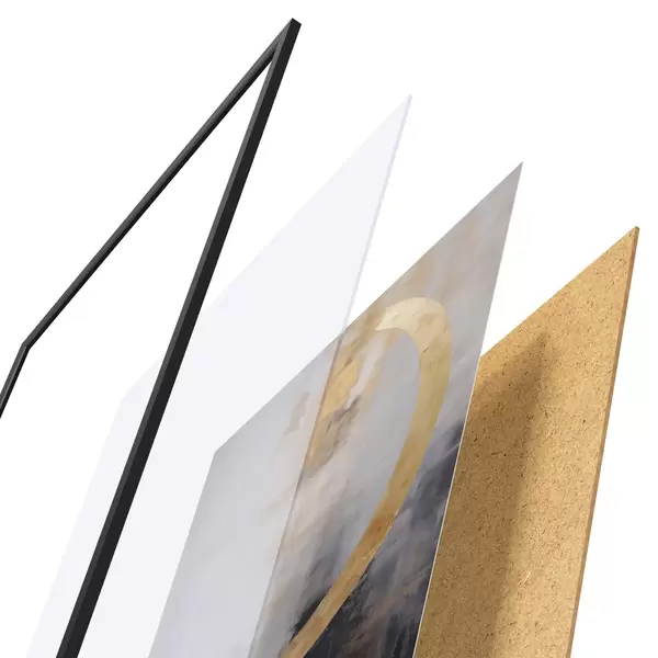 Le poster se compose d'un cadre, d'un plexiglas, d'une image imprimée et d'un support en aggloméré. Le poster peut être immédiatement accroché au mur grâce aux fixations au dos.