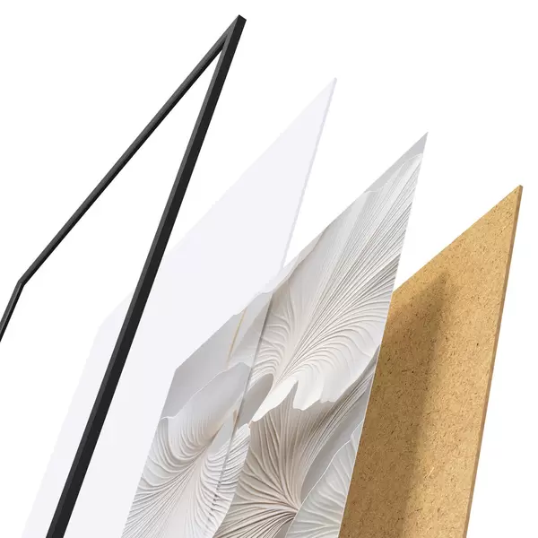Le poster se compose d'un cadre, d'un plexiglas, d'une image imprimée et d'un support en aggloméré. Le poster peut être immédiatement accroché au mur grâce aux fixations au dos.
