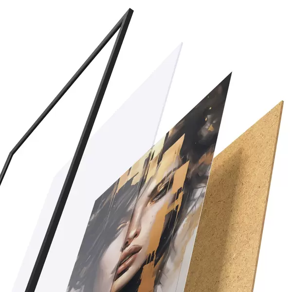 Le poster se compose d'un cadre, d'un plexiglas, d'une image imprimée et d'un support en aggloméré. Le poster peut être immédiatement accroché au mur grâce aux fixations au dos.