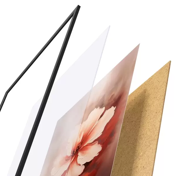 Le poster se compose d'un cadre, d'un plexiglas, d'une image imprimée et d'un support en aggloméré. Le poster peut être immédiatement accroché au mur grâce aux fixations au dos.