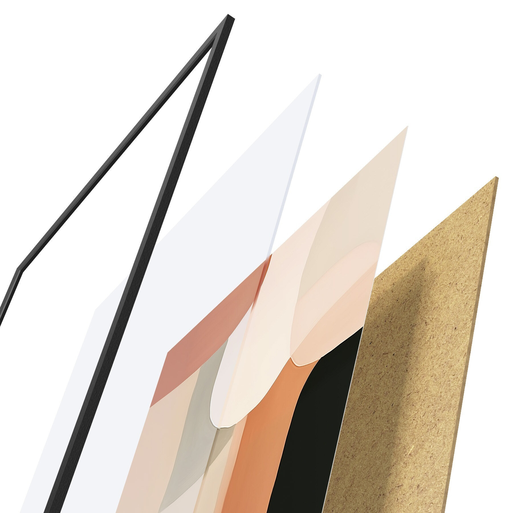 Le poster se compose d'un cadre, d'un plexiglas, d'une image imprimée et d'un support en aggloméré. Le poster peut être immédiatement accroché au mur grâce aux fixations au dos.
