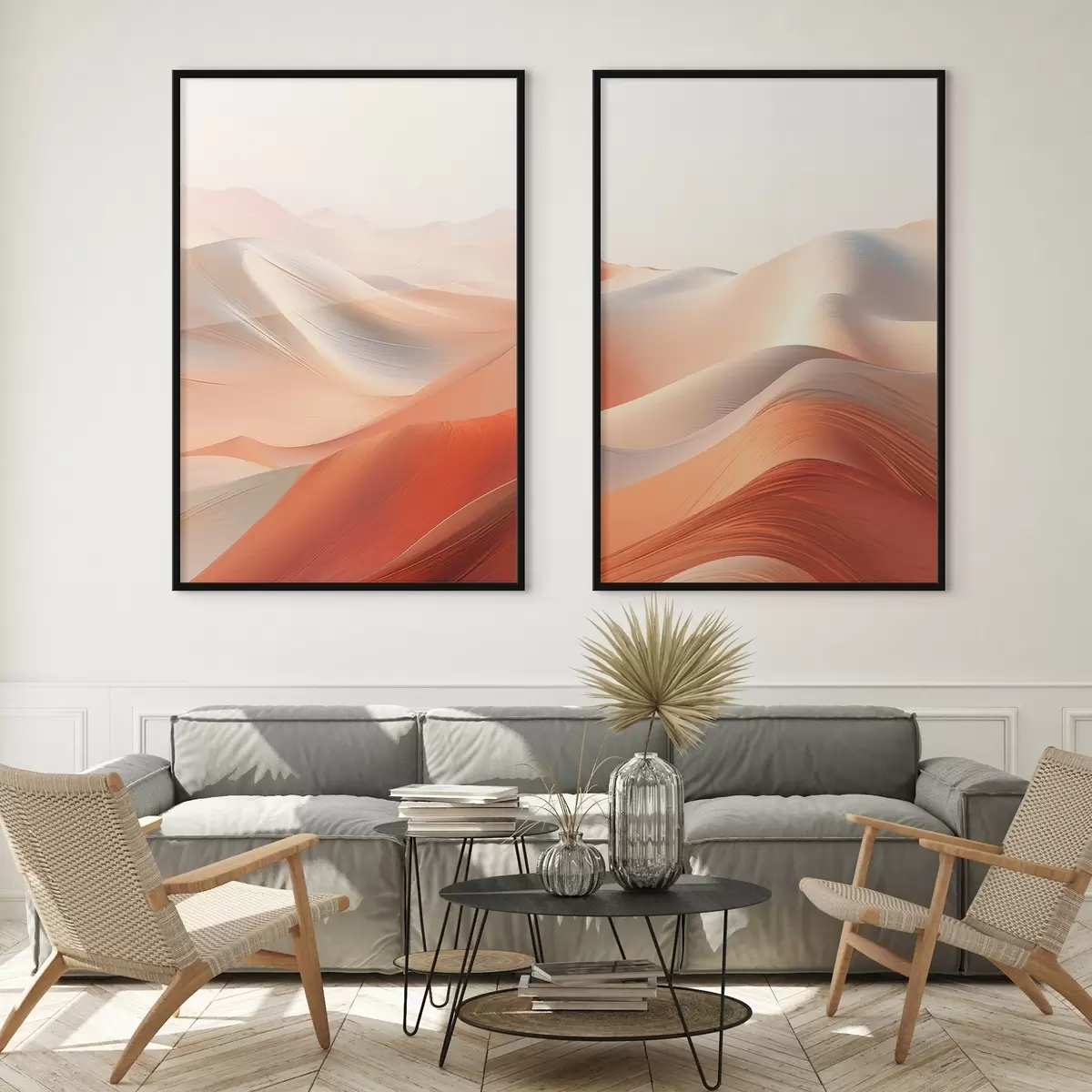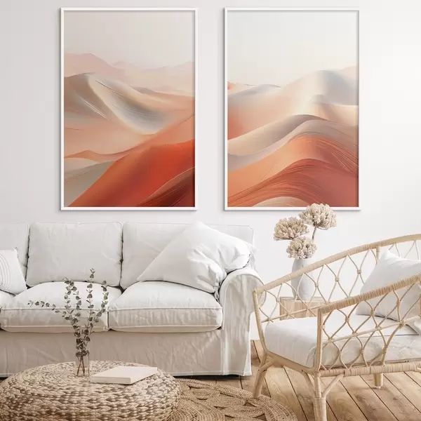 Affiche Paysage désertique abstrait avec des dunes de sable ondulantes dans des tons chauds orange et blanc Non d01123