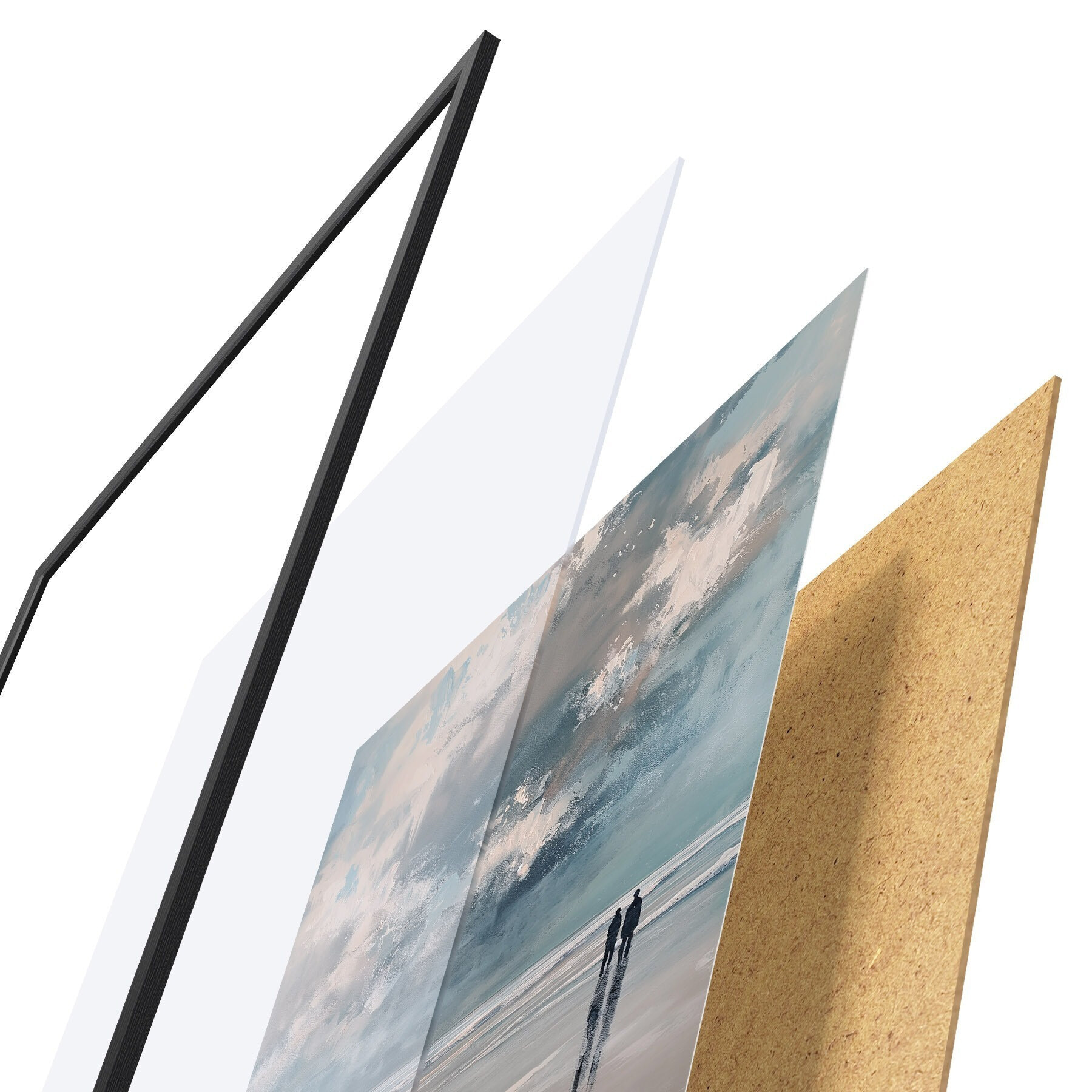 Le poster se compose d'un cadre, d'un plexiglas, d'une image imprimée et d'un support en aggloméré. Le poster peut être immédiatement accroché au mur grâce aux fixations au dos.