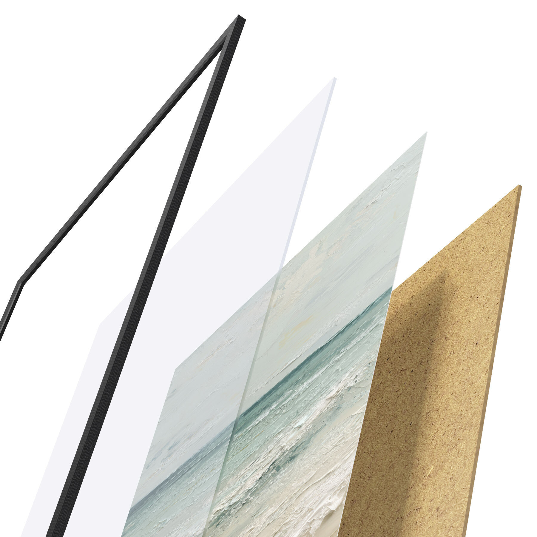 Le poster se compose d'un cadre, d'un plexiglas, d'une image imprimée et d'un support en aggloméré. Le poster peut être immédiatement accroché au mur grâce aux fixations au dos.