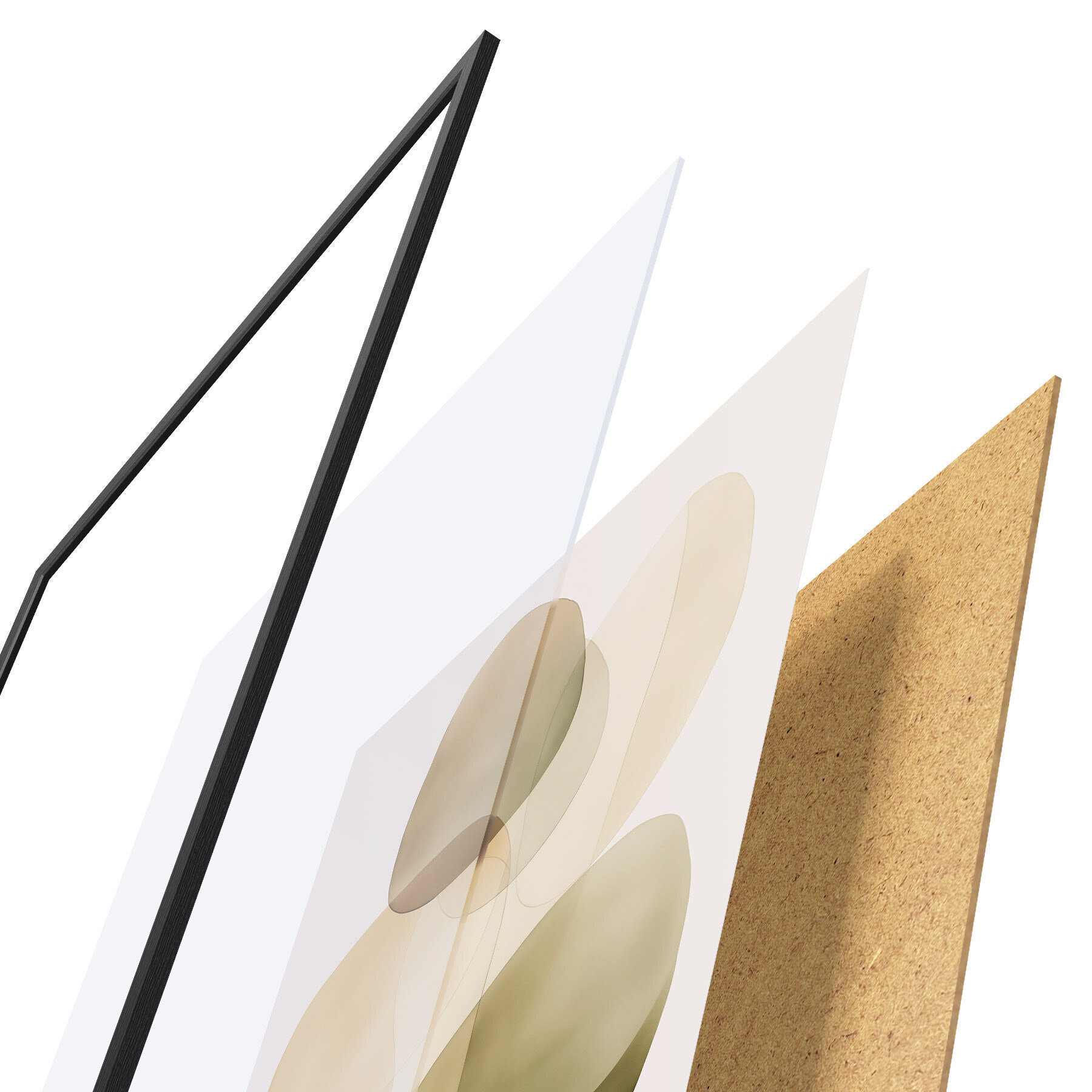 Le poster se compose d'un cadre, d'un plexiglas, d'une image imprimée et d'un support en aggloméré. Le poster peut être immédiatement accroché au mur grâce aux fixations au dos.