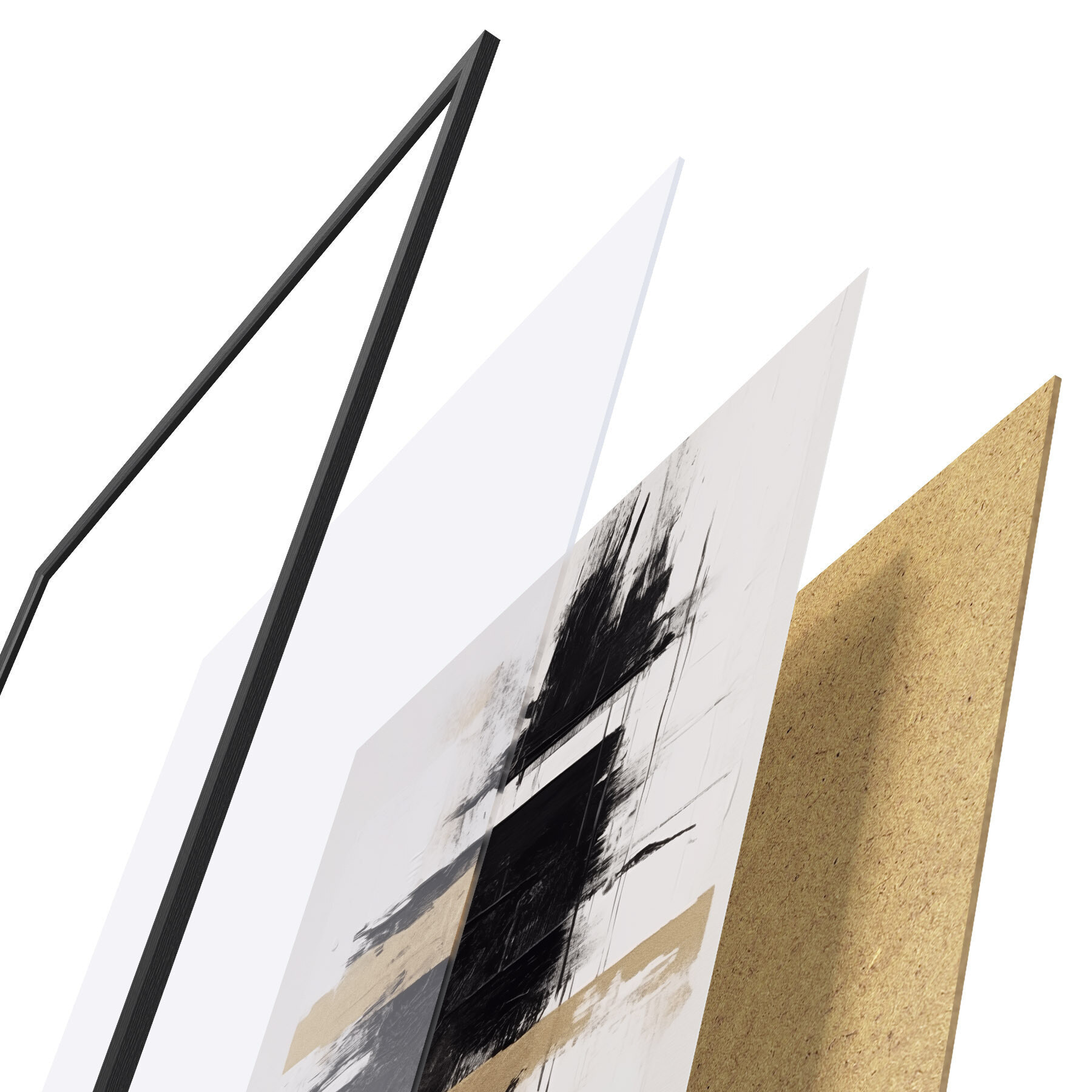 Le poster se compose d'un cadre, d'un plexiglas, d'une image imprimée et d'un support en aggloméré. Le poster peut être immédiatement accroché au mur grâce aux fixations au dos.
