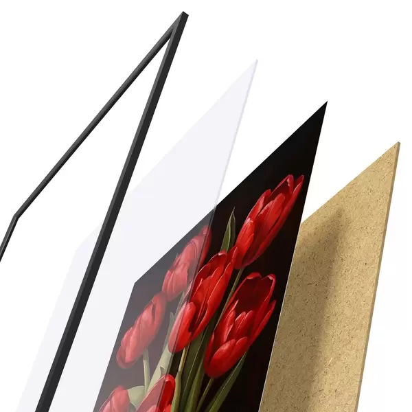 Le poster se compose d'un cadre, d'un plexiglas, d'une image imprimée et d'un support en aggloméré. Le poster peut être immédiatement accroché au mur grâce aux fixations au dos.