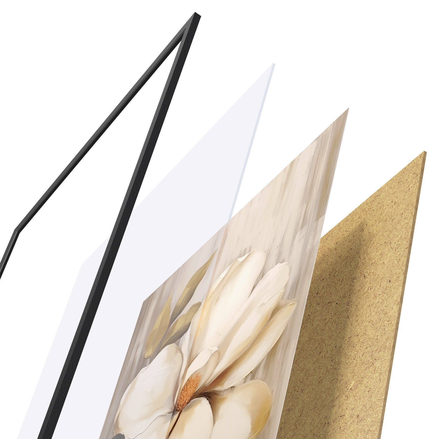 Le poster se compose d'un cadre, d'un plexiglas, d'une image imprimée et d'un support en aggloméré. Le poster peut être immédiatement accroché au mur grâce aux fixations au dos.