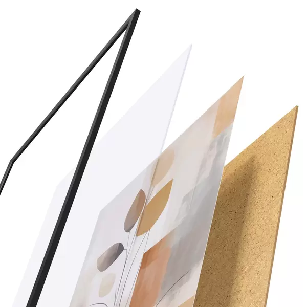 Le poster se compose d'un cadre, d'un plexiglas, d'une image imprimée et d'un support en aggloméré. Le poster peut être immédiatement accroché au mur grâce aux fixations au dos.