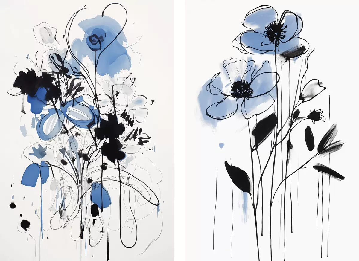 Affiche Abstraction avec des taches et des fleurs Non d01222