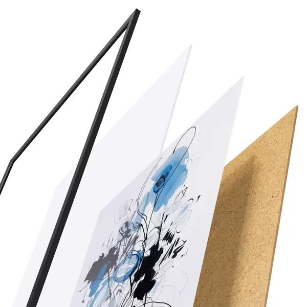 Le poster se compose d'un cadre, d'un plexiglas, d'une image imprimée et d'un support en aggloméré. Le poster peut être immédiatement accroché au mur grâce aux fixations au dos.