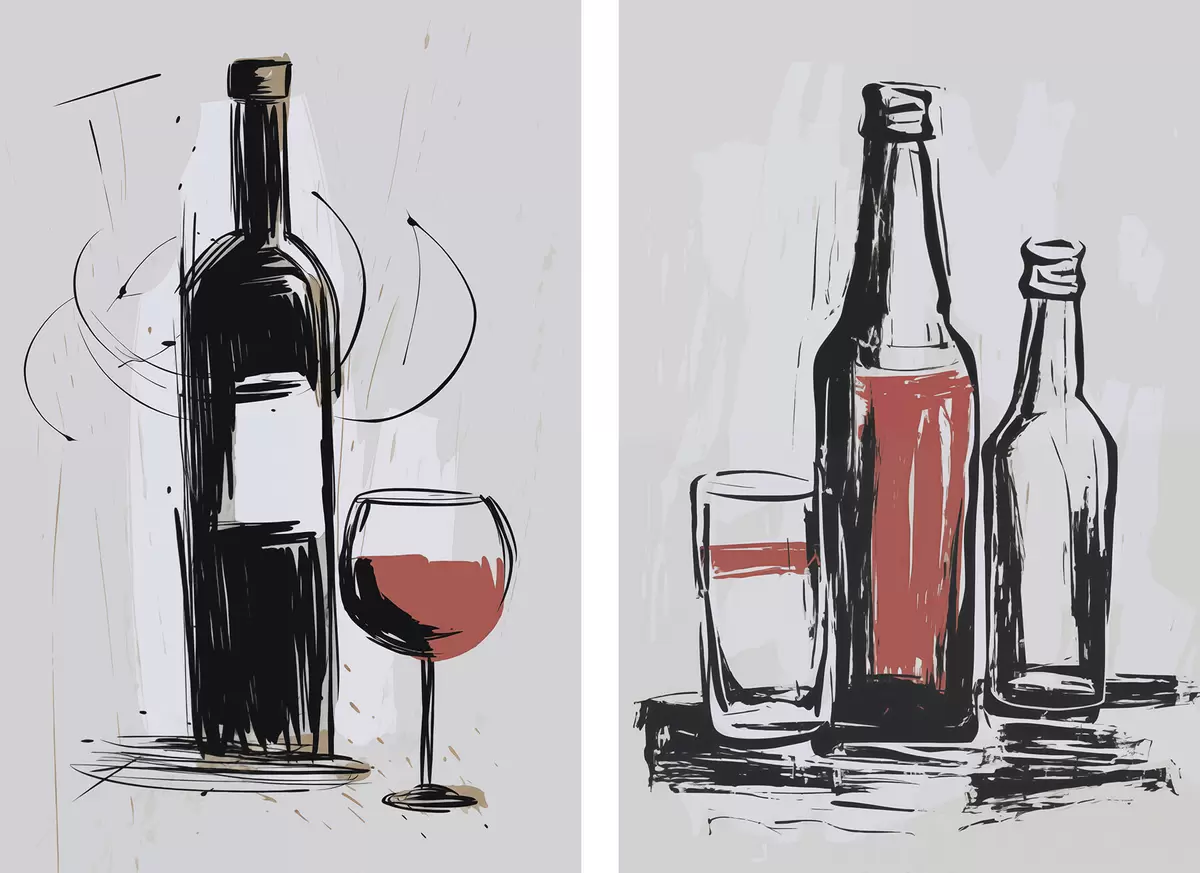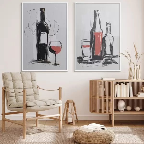 Affiche Bouteilles et verre d01223