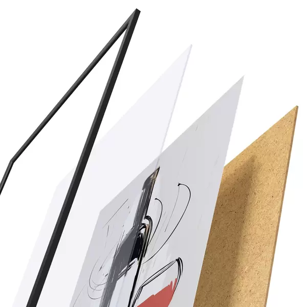 Le poster se compose d'un cadre, d'un plexiglas, d'une image imprimée et d'un support en aggloméré. Le poster peut être immédiatement accroché au mur grâce aux fixations au dos.