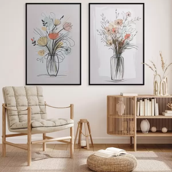 Affiche Fleurs dans un vase imitation d'un dessin Non d01224