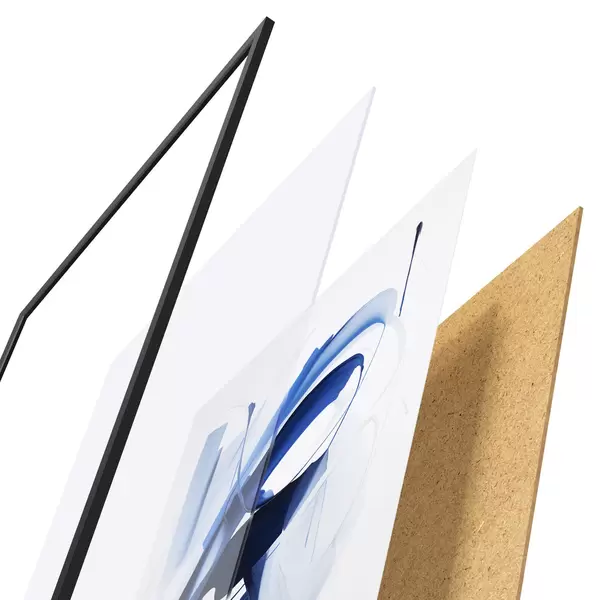 Le poster se compose d'un cadre, d'un plexiglas, d'une image imprimée et d'un support en aggloméré. Le poster peut être immédiatement accroché au mur grâce aux fixations au dos.