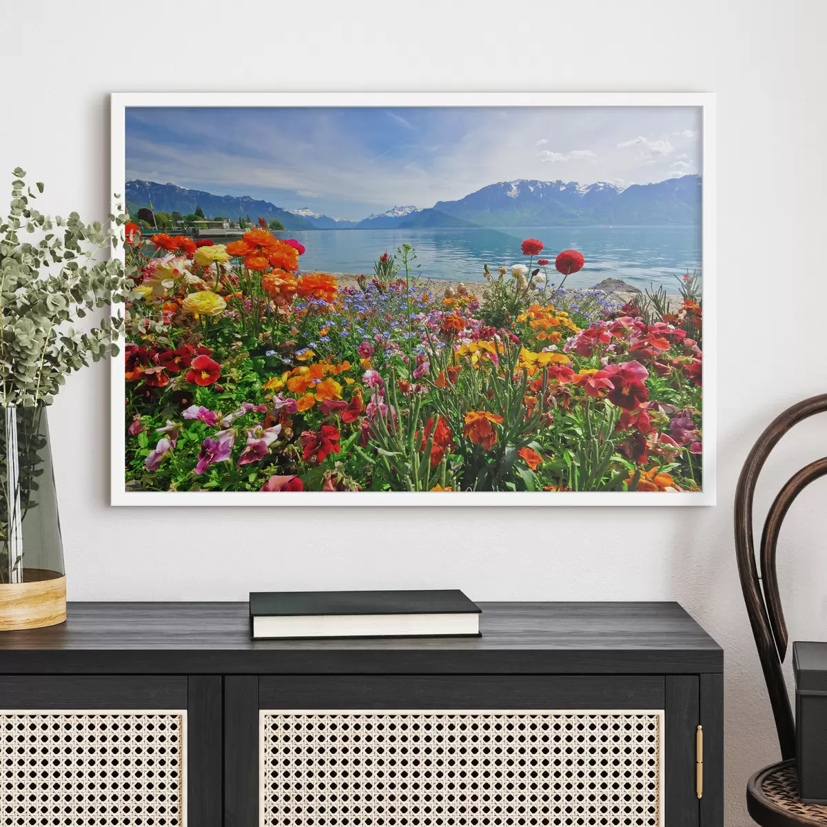 Le poster se compose d'un cadre, d'un plexiglas, d'une image imprimée et d'un support en aggloméré. Le poster peut être immédiatement accroché au mur grâce aux fixations au dos.