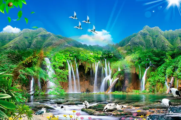 Affiche Paysage printanier serein avec une faune paisible f03428