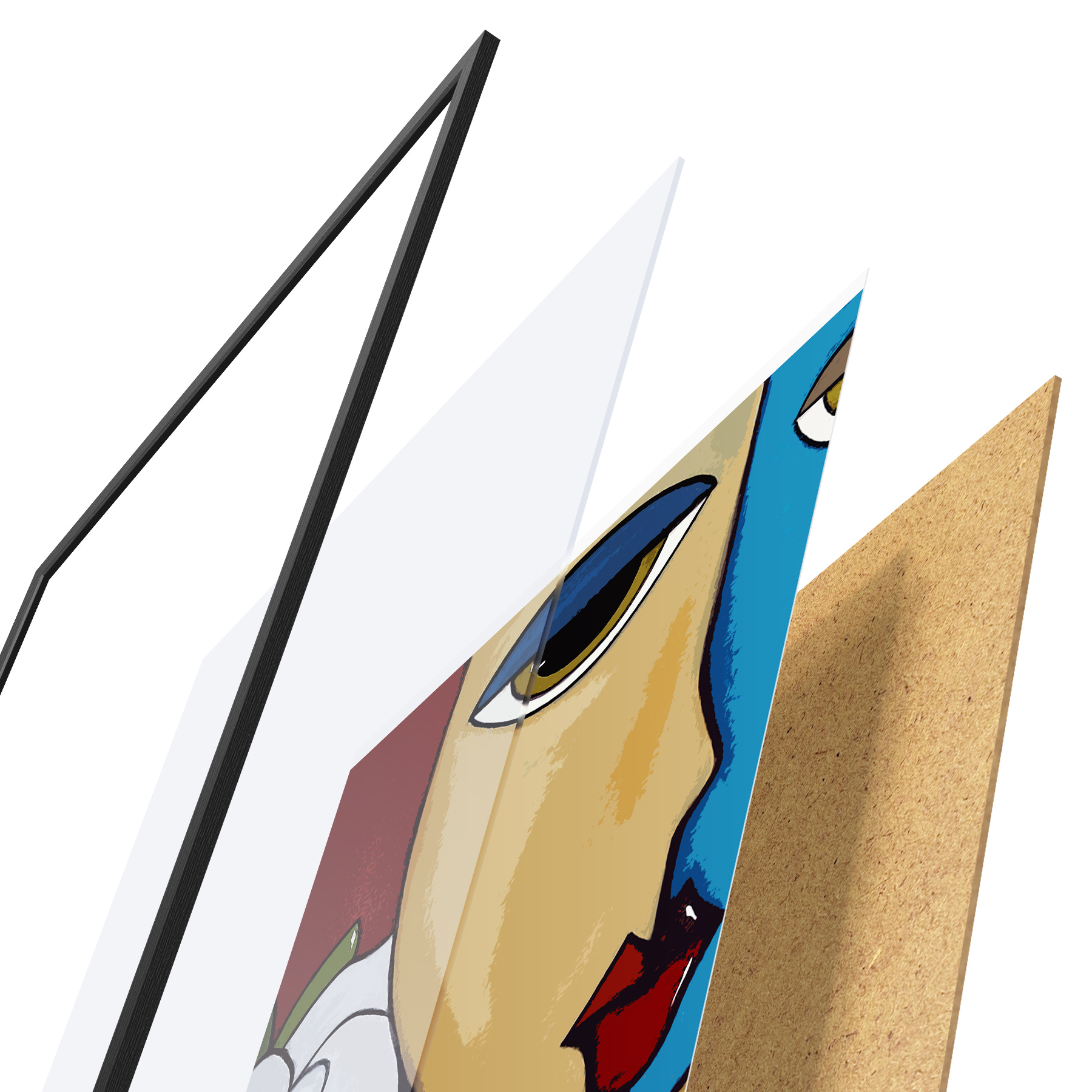 Le poster se compose d'un cadre, d'un plexiglas, d'une image imprimée et d'un support en aggloméré. Le poster peut être immédiatement accroché au mur grâce aux fixations au dos.