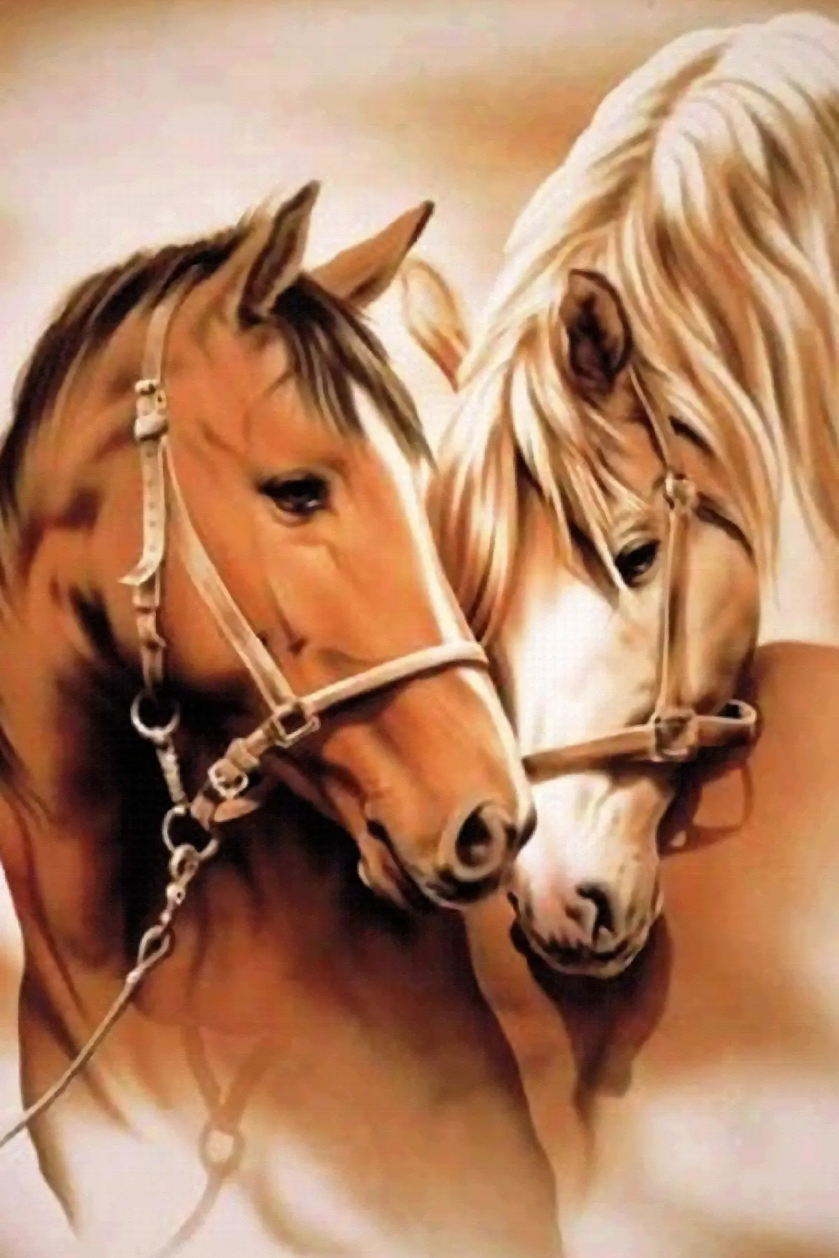 Affiche De majestueux chevaux dans une douce étreinte f03697