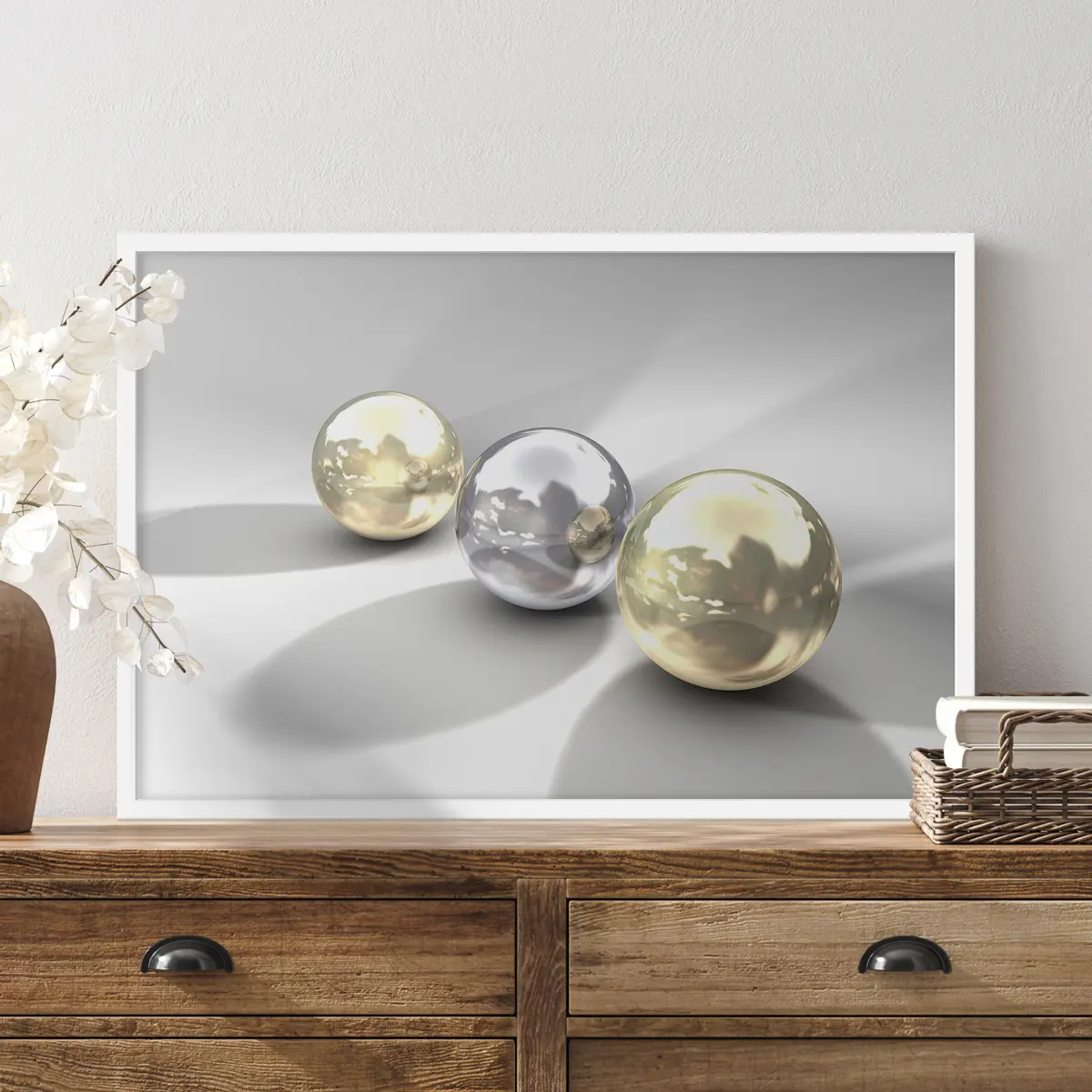 Affiche Sphères réfléchissantes sur une surface lisse f04617