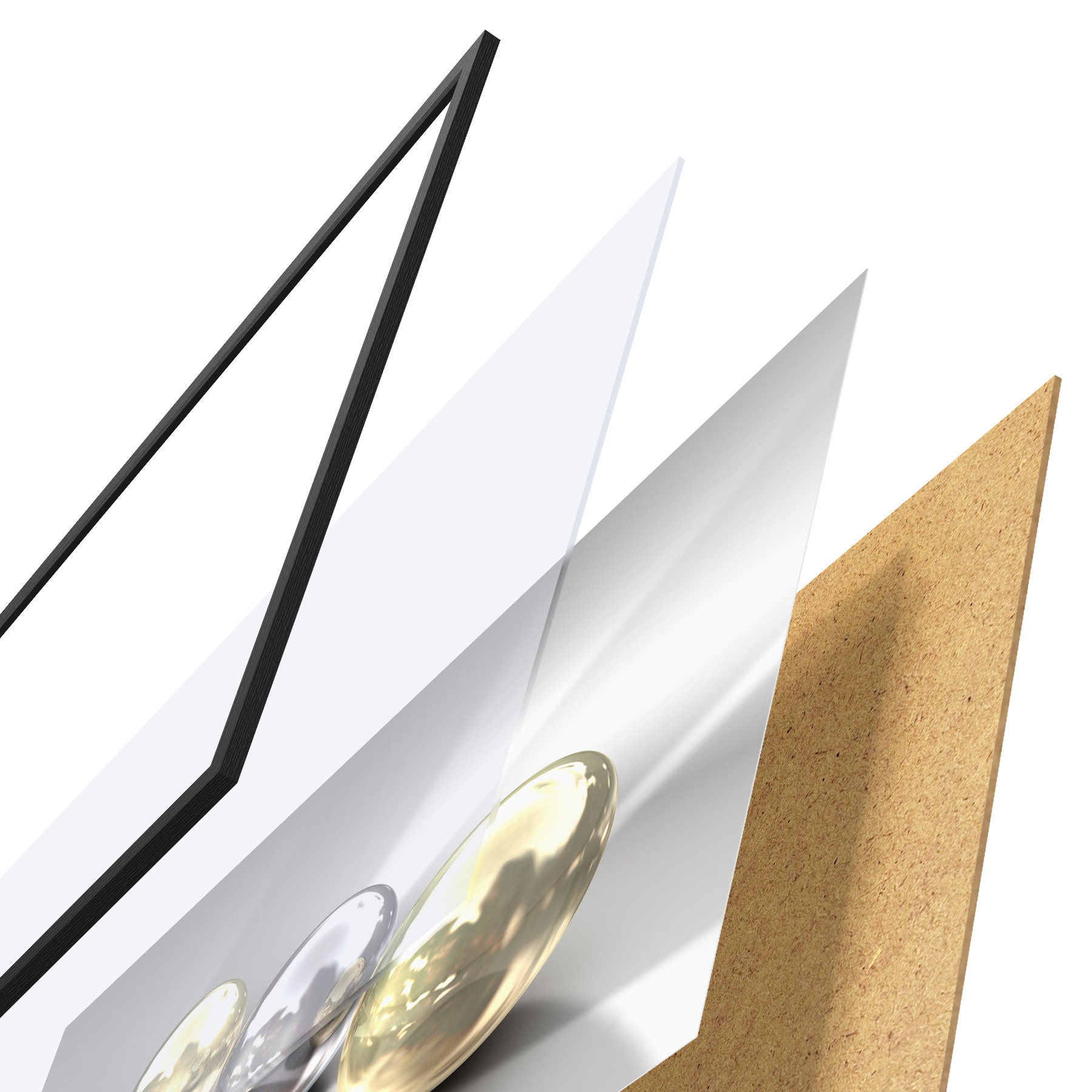 Le poster se compose d'un cadre, d'un plexiglas, d'une image imprimée et d'un support en aggloméré. Le poster peut être immédiatement accroché au mur grâce aux fixations au dos.