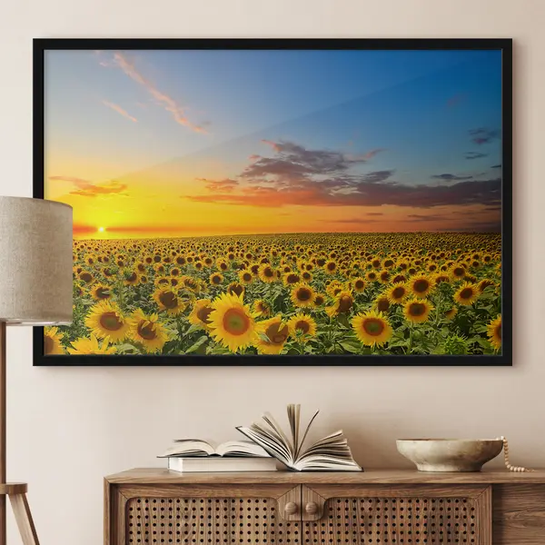 Affiche Champ de tournesols au coucher du soleil. Une vue magnifique f05429