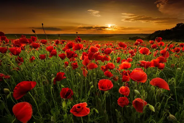 Affiche Champ de coquelicots éclatant au coucher du soleil Non f05477
