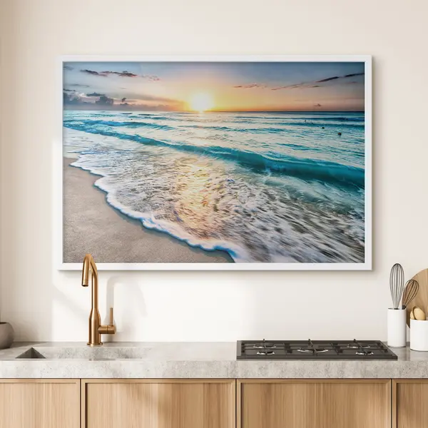 Affiche Coucher de soleil sur les vagues tranquilles de l'océan Non f08091